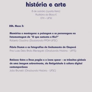 Além disso, conferências e mesas-redondas serão transmitidas pela Internet pelo canal do Programa de Pós-Graduação em História da UFSC no YouTube: